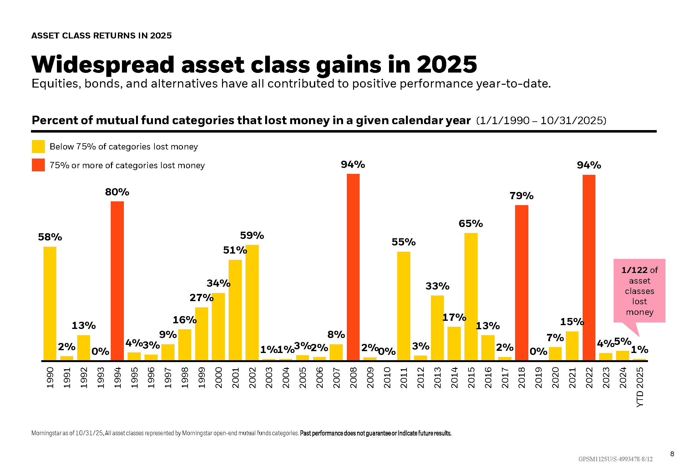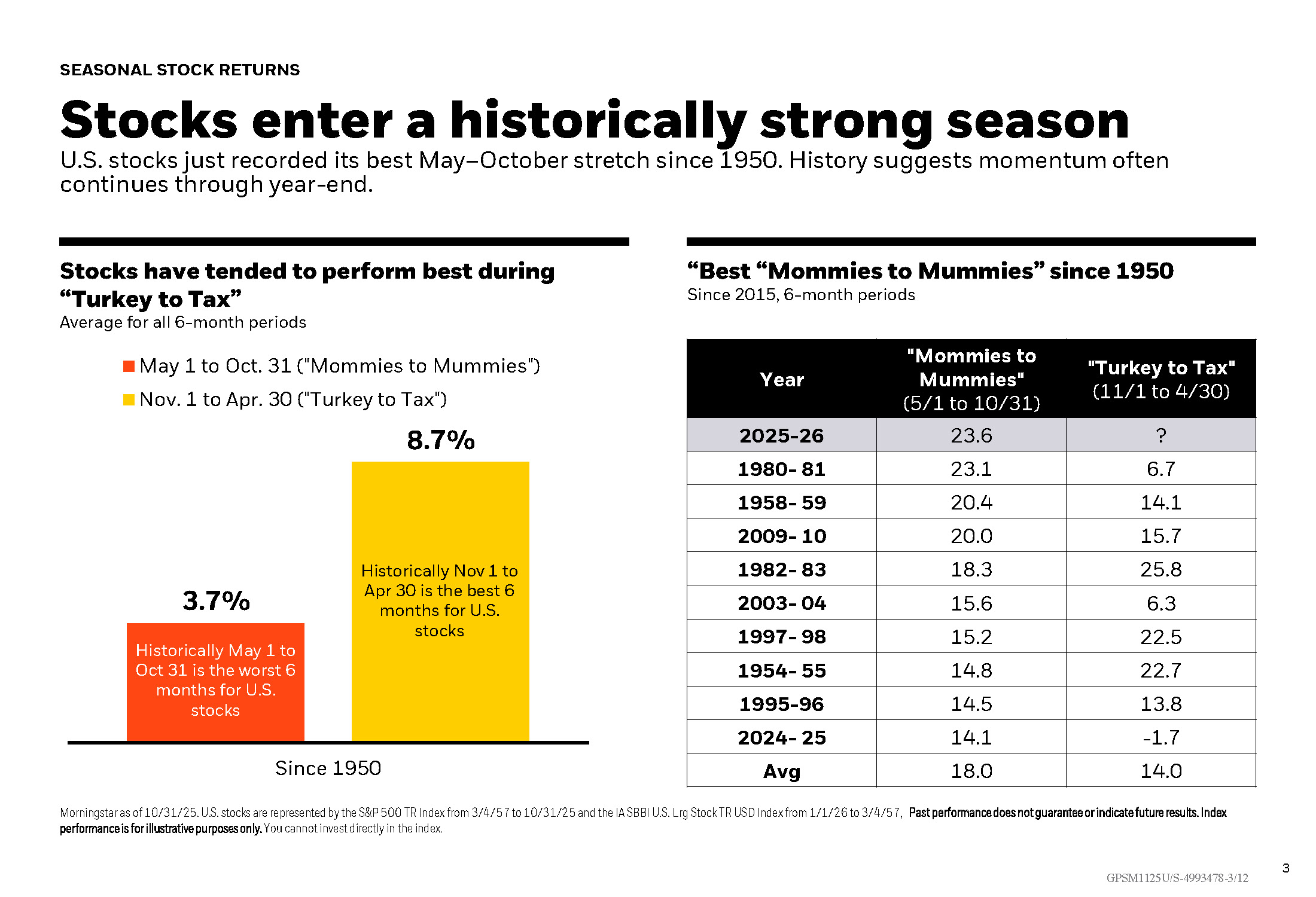 In reviewing stocks from May through October, it’s been a historically strong season, but not for stock mutual funds or ETFs. What about bonds, equities, and alternatives? How does AI growth compare to the “dot com” era? Finally, the continued importance of diversification.