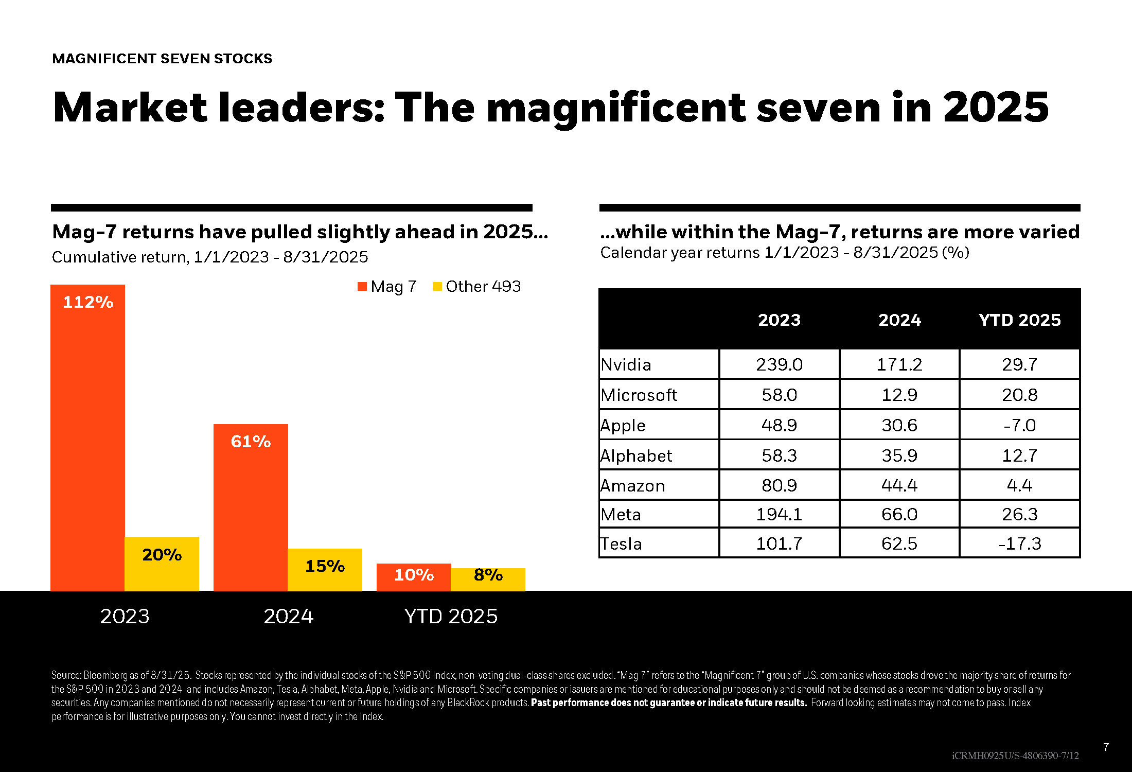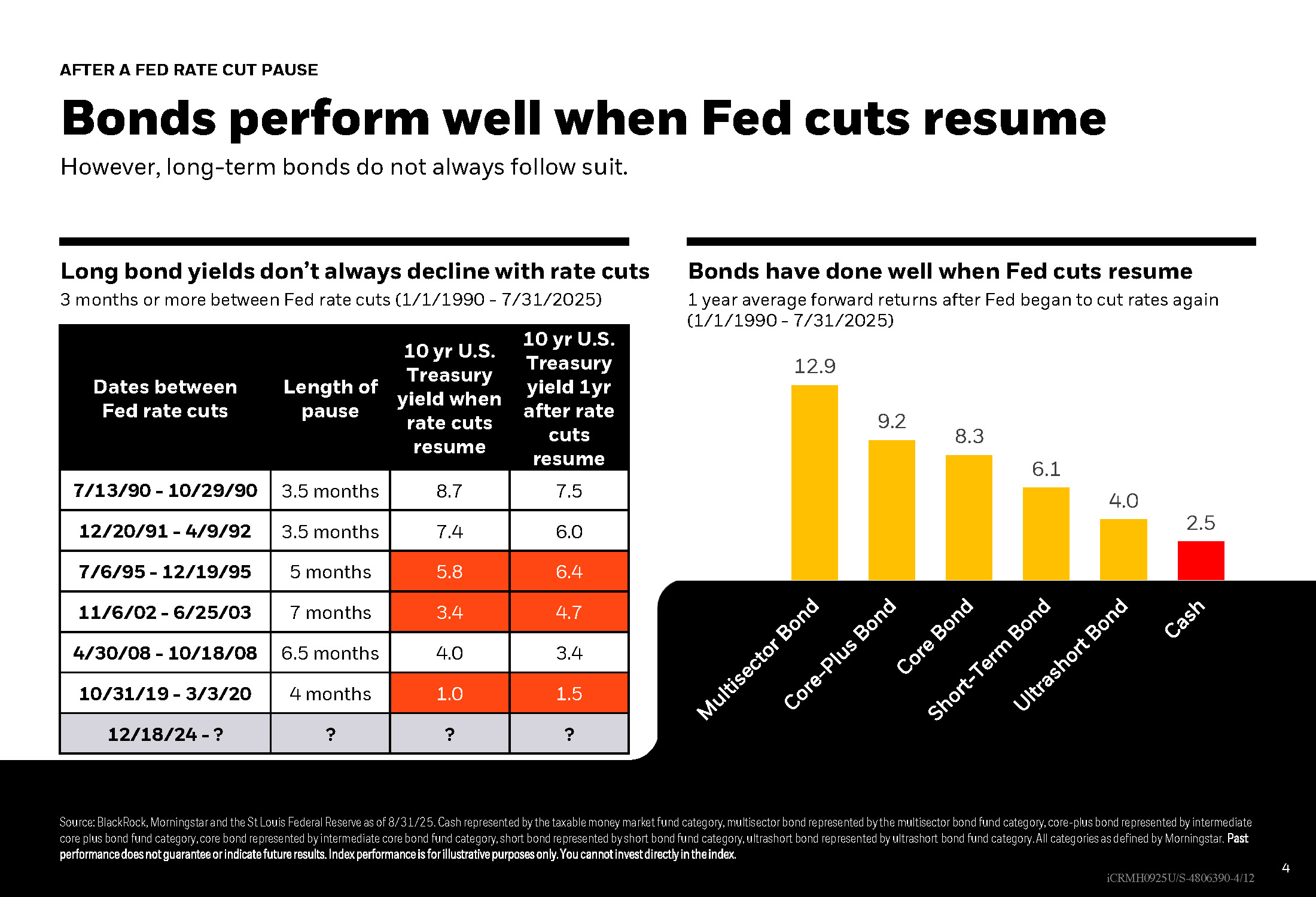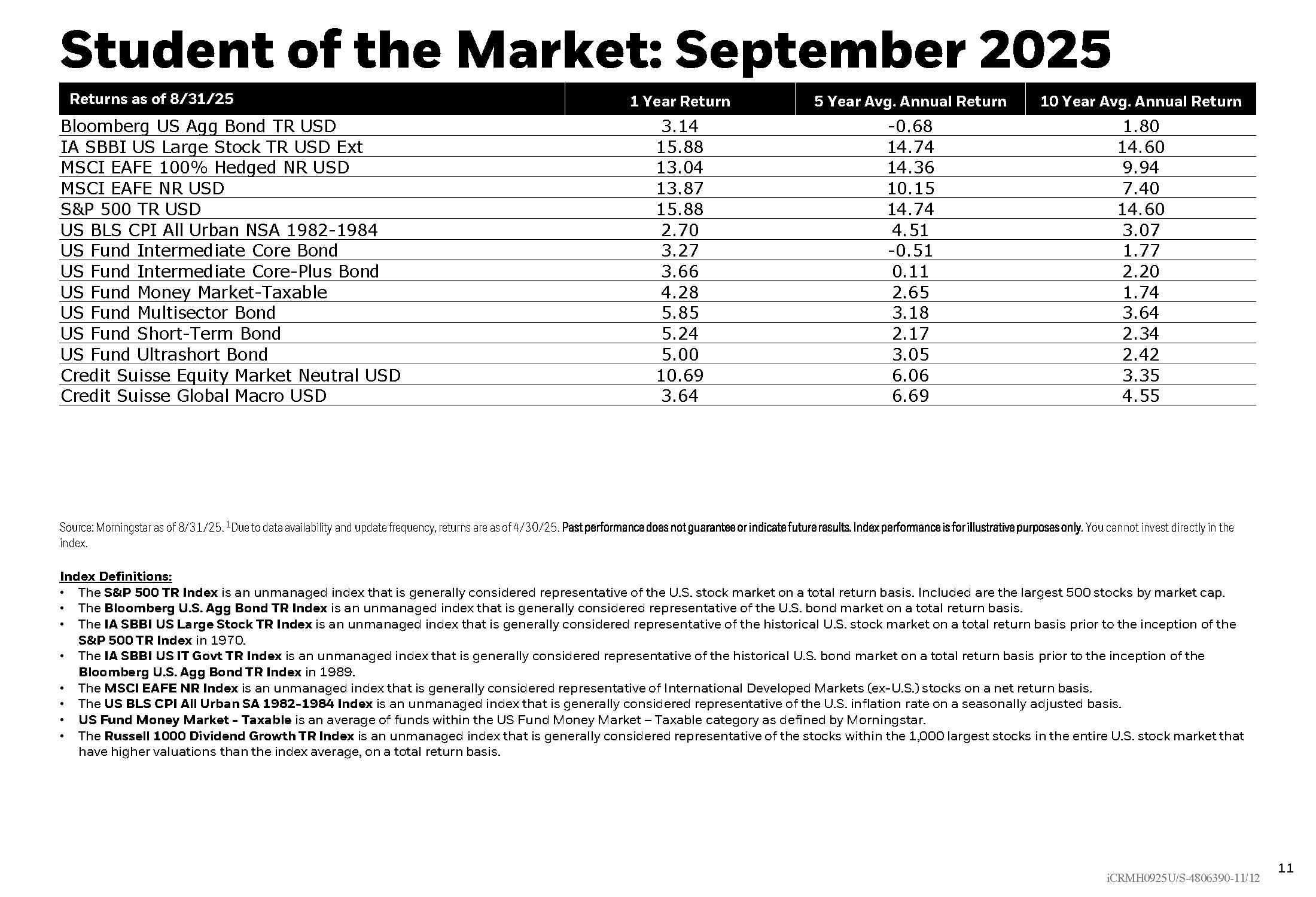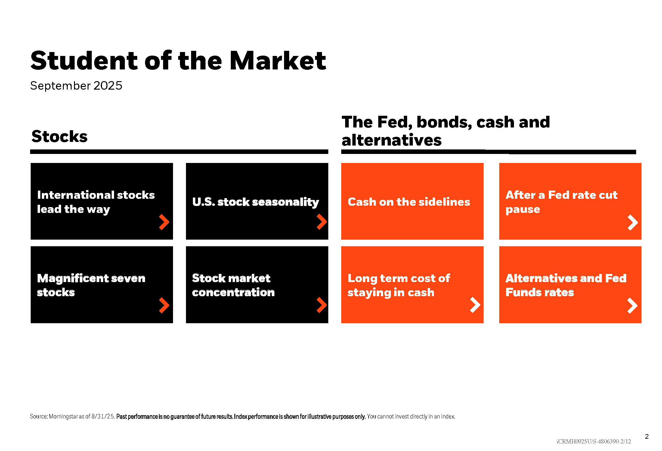 International stocks continue to lead in 2025, due to a weaker U.S. dollar. Domestically, the Mag-7 have pulled just slightly ahead. And what will interest rate cuts mean for short-term bonds? Rate cuts may impact short and long-term bonds differently, take a look!